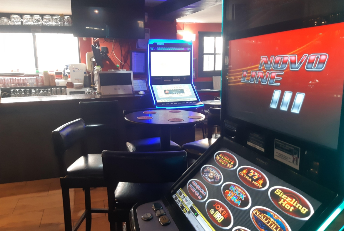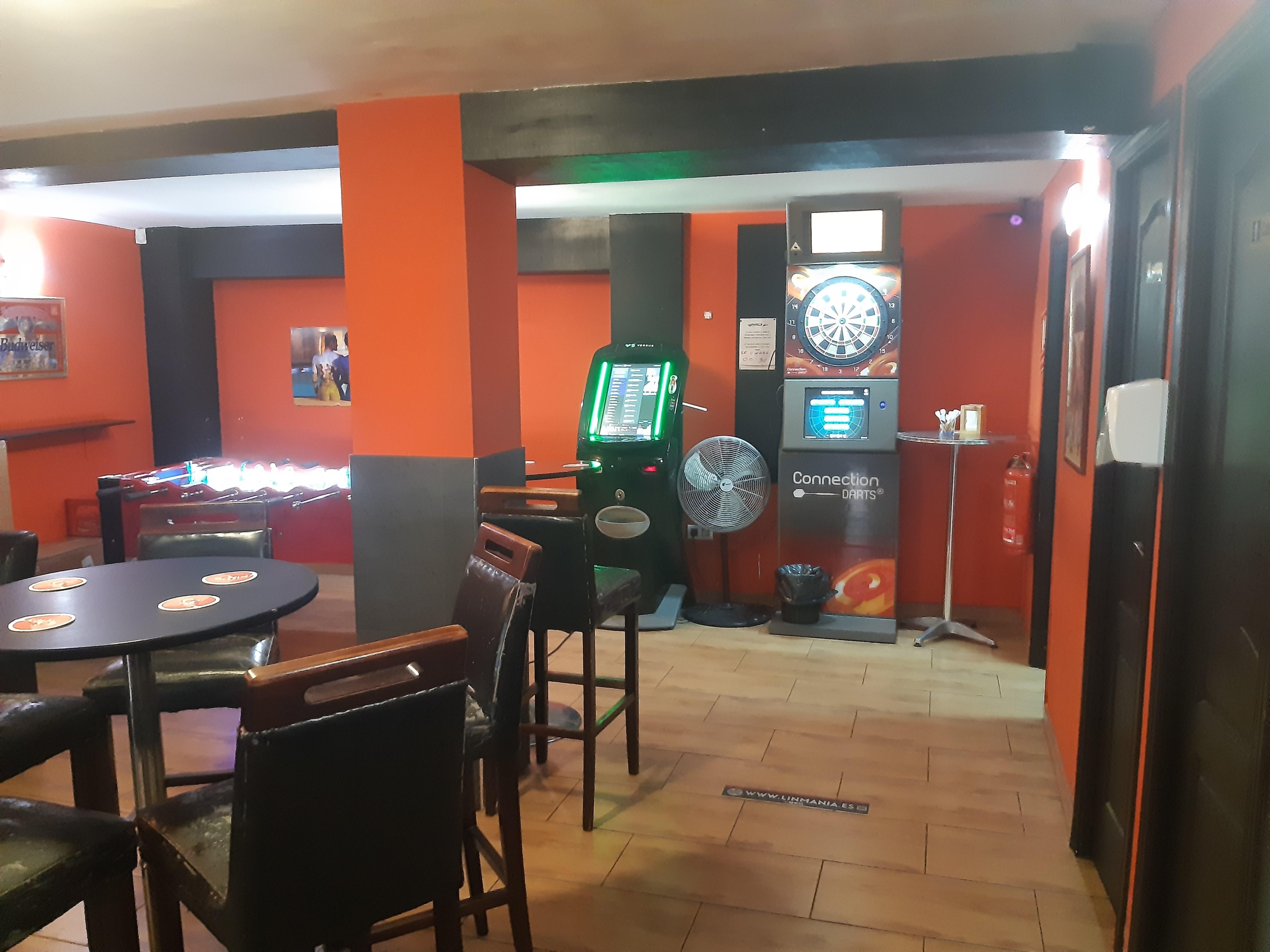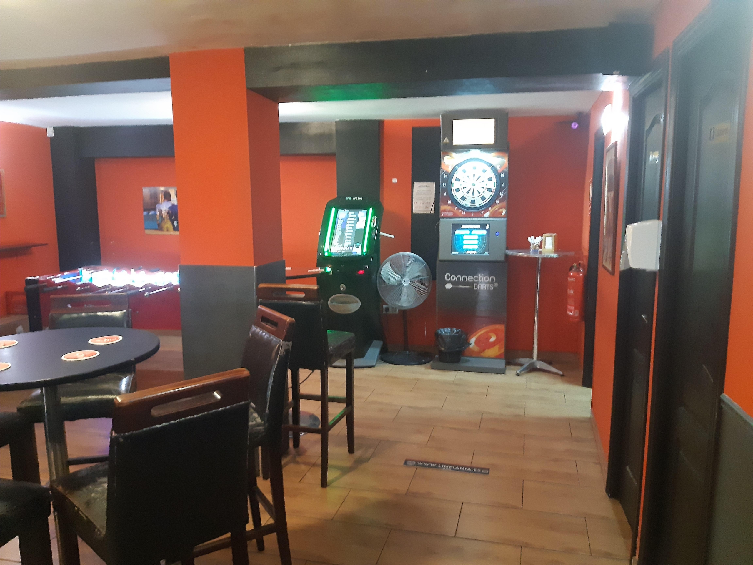 Pool table, electronic darts, and slot machines for added entertainment